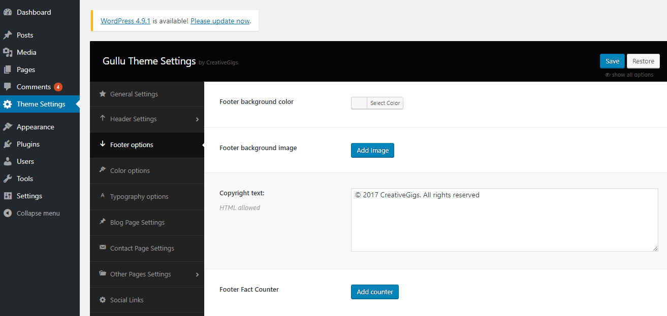 You can configure the footer area of the theme from the settings option. You will find all relevant section settings to the “Footer” option. Navigate to Theme Options > Footer Settings to go to this settings section. We provided all necessary instructions and descriptions with all the options.